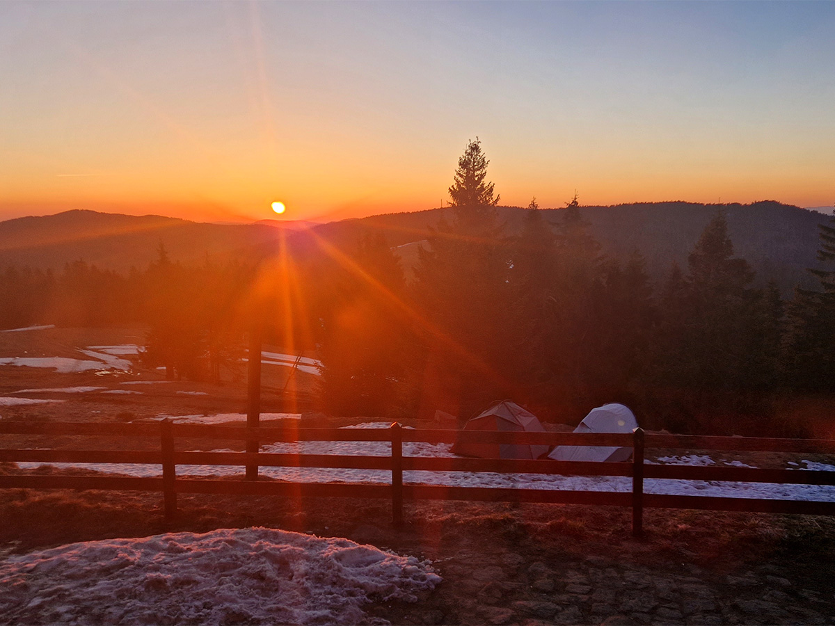 W schronisku było cicho, wszyscy jeszcze spali. Na zewnątrz czuć było chłód poranka, ale w ogóle nie zwracaliśmy na to uwagi, zajęci podziwianiem widoków, a te były wspaniałe.
