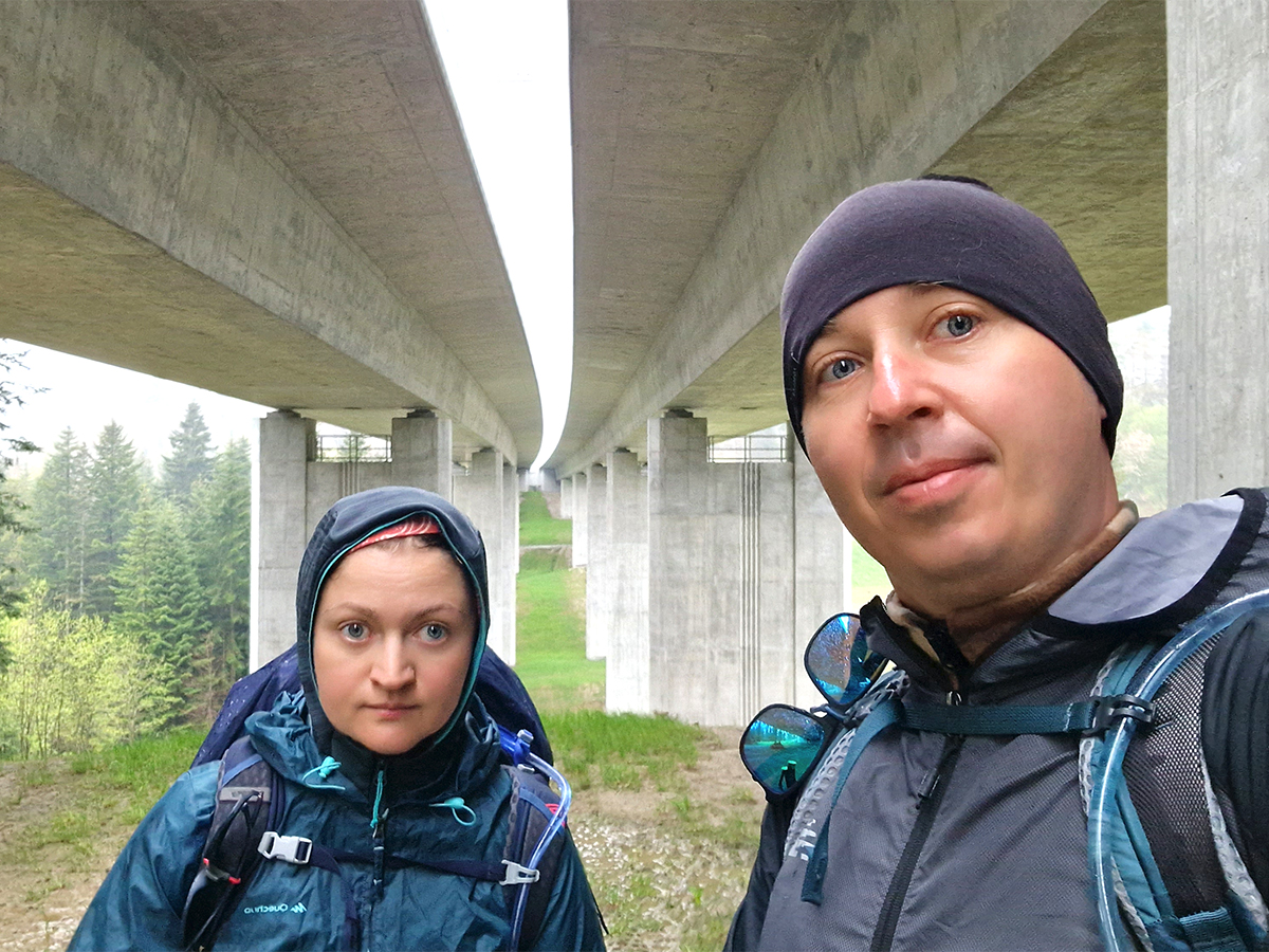 Czeka nas przejście pod słynna “Zakopianką”. Nie wiem dlaczego uznałam to za jakiś przełomowy moment, ale stanie pomiędzy dwiema jezdniami było fajne. dobrze, że nic stamtąd nie spadło nam na głowy, za to trochę pokapał deszcz.