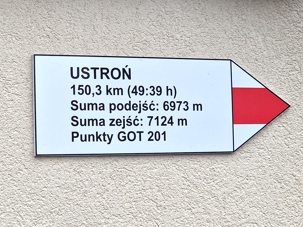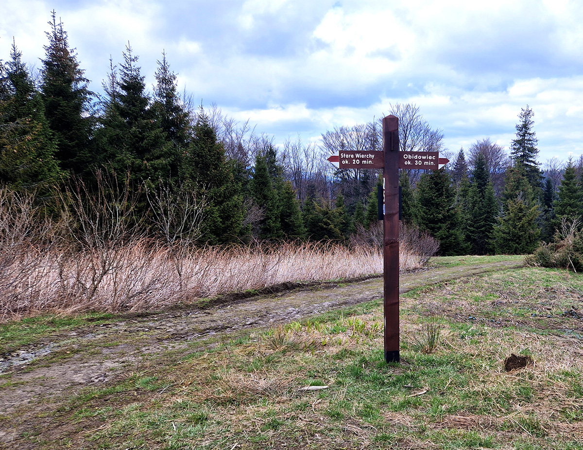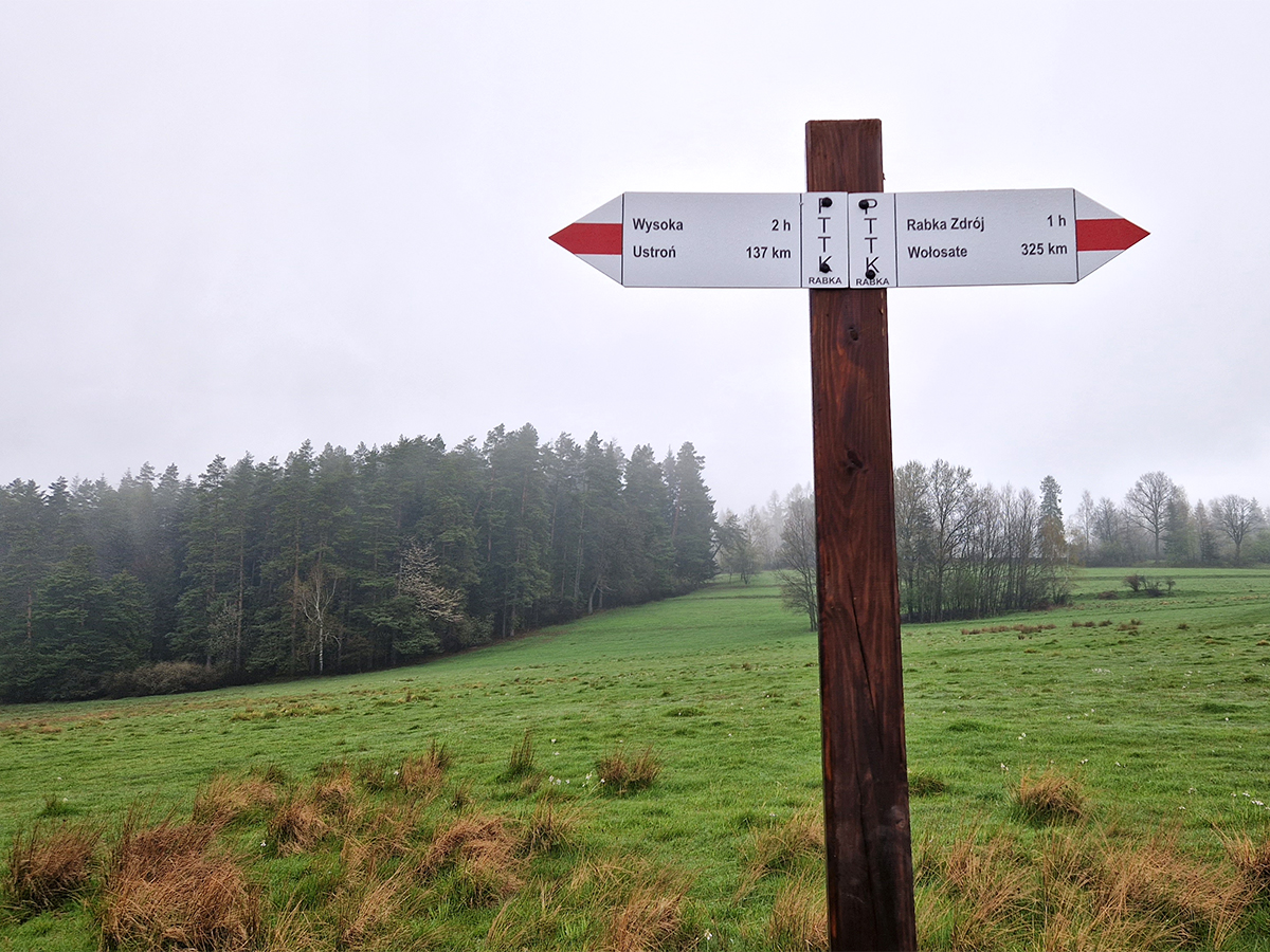 Napotkany po drodze szlakowskaz wskazywał nieco zakłamany kilometraż GSB.