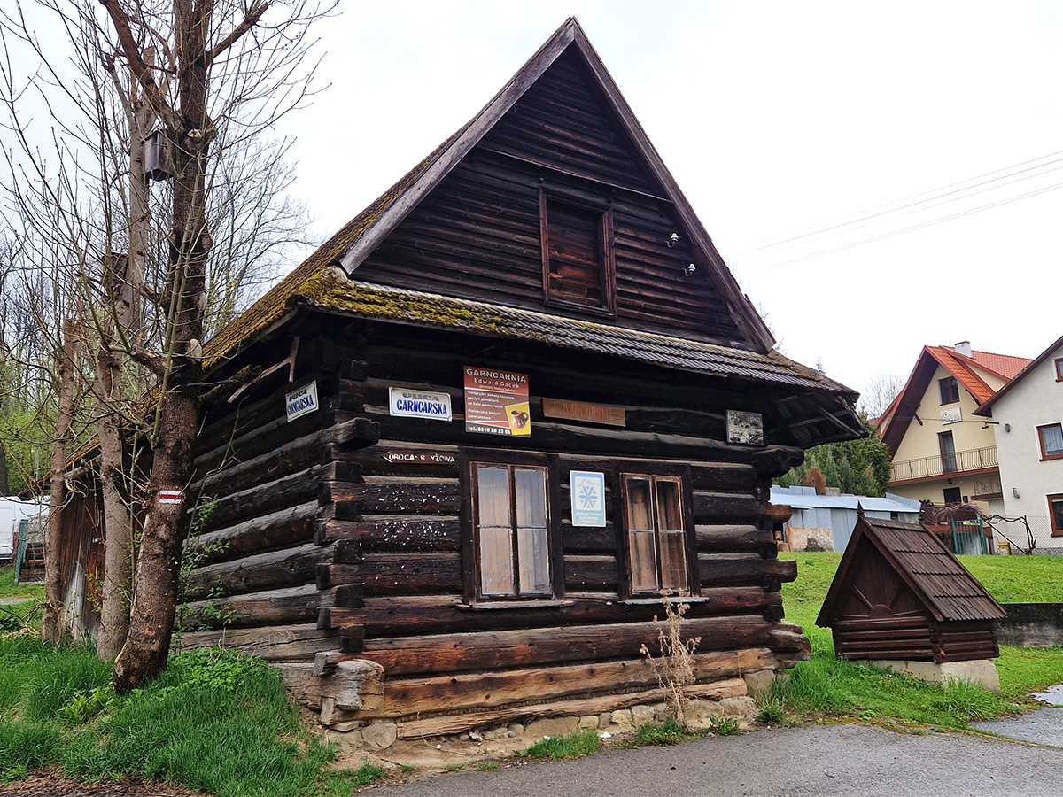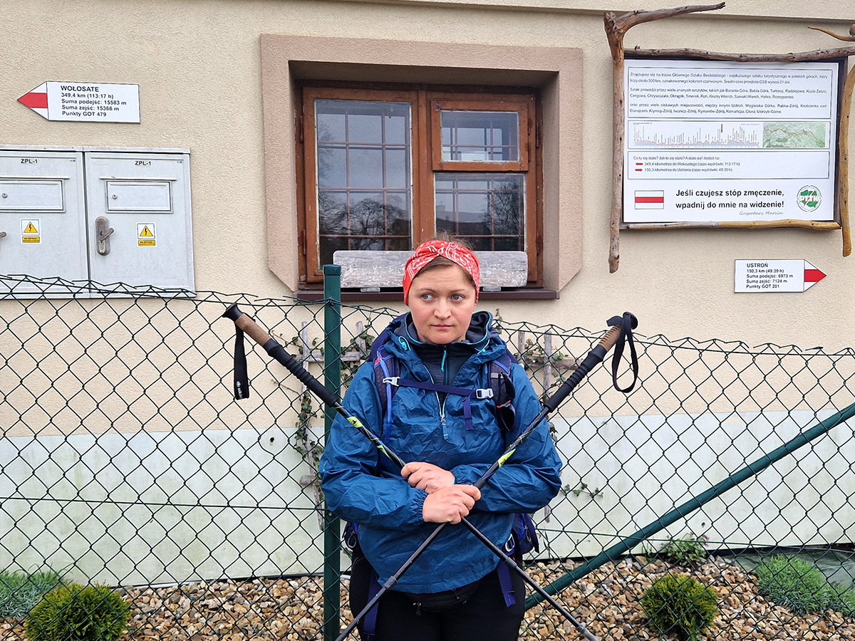 Kierujemy się w stronę kolejnego schroniska. Znajdujemy się już w Gorczańskim Parku Narodowym, czyli w trzecim z kolei po Beskidzie Śląskim i Żywieckim, paśmie górskim na trasie GSB. Przy Schronisku na Starych Wierchach decydujemy się zatrzymać na żurek. Zbiegają się tu 4 szlaki: czerwony, żółty, niebieski i zielony, więc ludzi też jest sporo, czy to pieszych, rowerzystów i kładowców. Ci ostatni wraz z kierowcami jeepów rozjeździli szlak tak, że aby obejść, prawie suchą nogą potężne kałuże, trzeba się nakombinować.